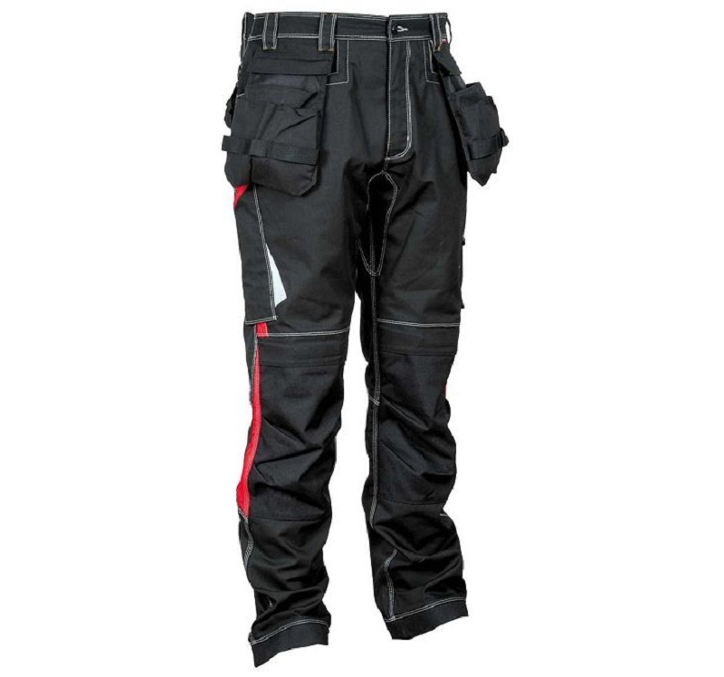 Pantalon de travail en 64% coton/34% polyester/2% ?lasthanne + inserts anti-abrasion en 100% nylon, 250 gr/m?. Entrejambe renforc?. Elastique ? la taille. Nombreuses poches + poches genouill?res. Coloris : bleu navy/royal, anthracite/noir/lime, noir/rouge, anthracite/noir/anthracite. Tailles 38 ? 58 (F) – (44 ? 64 EU).