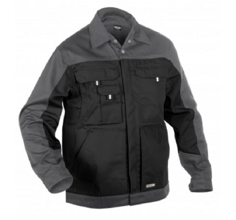 Veste de travail bicolore. 65 % polyester/35 % coton, env. 245 g/m?. Poignets r?glables avec velcro, taille r?glable avec boutons de pression. Fermeture ? glissi?re avec rabat boutons pressions. Plis d’aisance dans le dos. 2 grandes poches plaqu?es, 2 poches poitrines, poche t?l?phone, porte-crayon, poche outils, poche int?rieure. Tailles XS ? 3XL. Coloris gris/noir – noir/gris – marine/royal – rouge/gris – bleu royal.