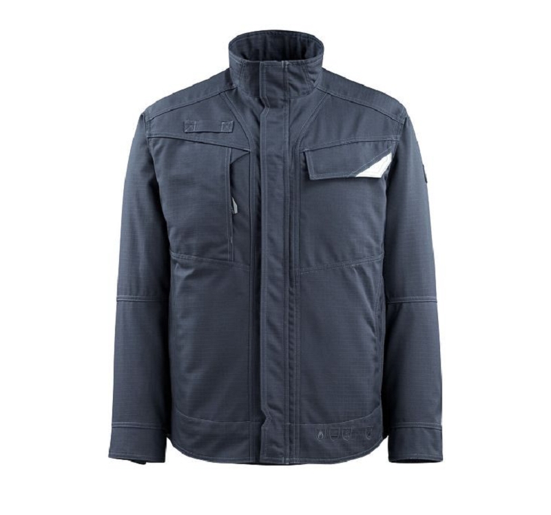 Veste antistatique, r?sistant(e) aux acides et ignifug?(e). Repousse la salet?. Prot?ge contre les arcs ?lectriques et lors de travaux de soudage occasionnels. Col montant. Coutures doubles sur les ?paules, les manches et les c?t?s. Fermeture avec rabat coupe vent et boutons-pression non visibles/recouverts. Poche zipp?e sous rabat coupe-vent. Dos long. Poche poitrine zipp?e. Poche poitrine sous rabat avec fermeture bouton-pression. Anneau en D. Sangle pour alarme antigaz. Poches frontales zipp?es. Manches ergonomiques pour une grande libert? de mouvement. Poignets avec ?lastique. Taille r?glable de l’int?rieur par bande ?lastique. Effets r?tror?fl?chissants. Coloris : marine. Tailles : S ? 4XL.