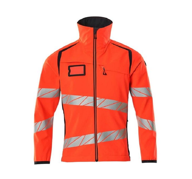 Veste softshell 100% polyester, 330gr/m?. Tissu fluorescent avec bandes r?tror?fl?chissantes. Coupe-vent, hydrofuge et permettant au corps de respirer. Coupe moderne, plus pr?s du corps mais offrant une excellente libert? de mouvement. Col montant. Bicolore. Fermeture zipp?e ?tanche et rabat coupe-vent ? l’int?rieur. Poche poitrine zipp?e. Poches lat?rales avec fermeture zipp?e ?tanche. Poches int?rieures. Elastique aux poignets. Taille ajustable ? l’aide d’un cordon ?lastique de serrage. Porte-badge amovible. Tailles : S ? 5XL.